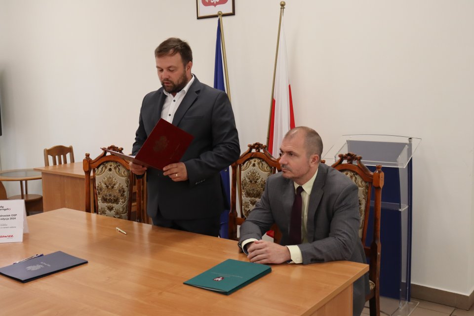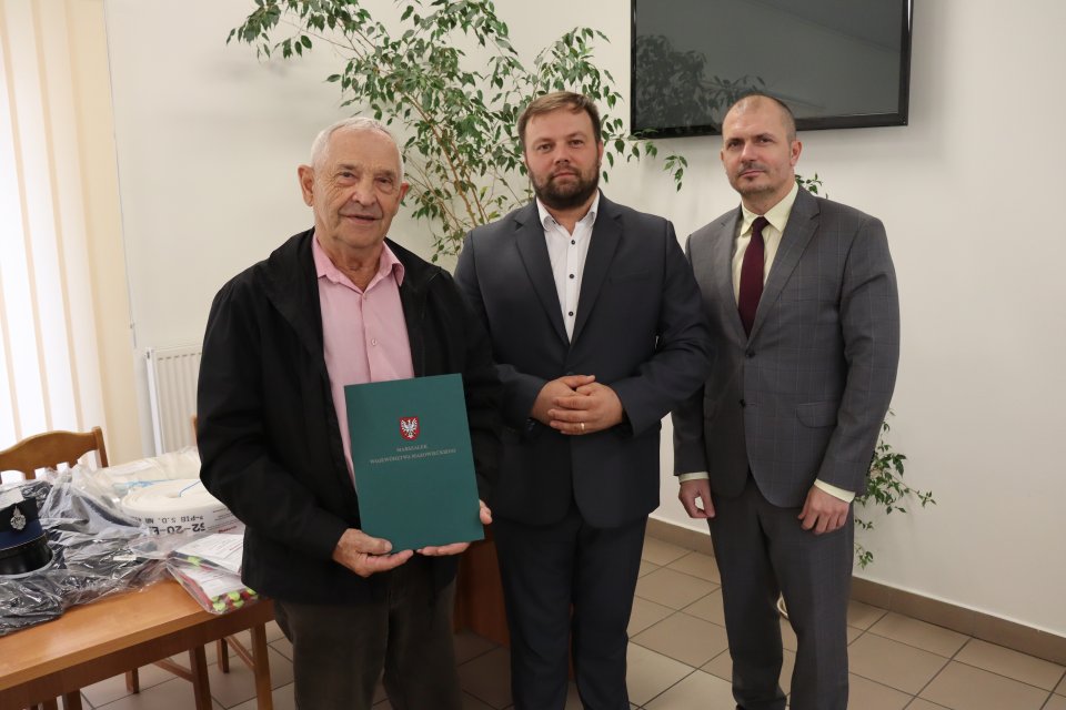 Wójt Gminy Gzy - Tomasz Sobieraj złożył podziękowania dla marszałka woj. mazowieckiego Adama Struzika na ręce Pana Rafała Woźniowskiego za zrozumienie potrzeb i wspieranie działań Ochotniczych Straży Pożarnych z terenu gminy Gzy.