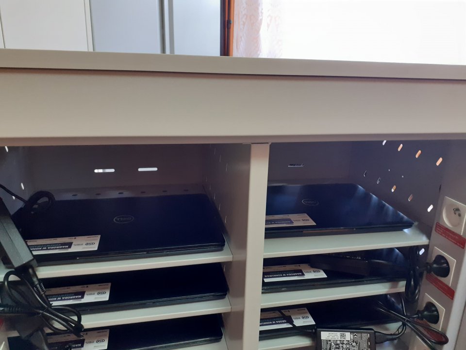 Zgodnie z otrzymaną informacją od Dyrektor Szkoły Pani Joanny Świderskiej, Społeczna Szkoła Podstawowa w Gzach otrzymała mobilną pracownię multimedialną składającą się z 16 laptopów marki DELL.
